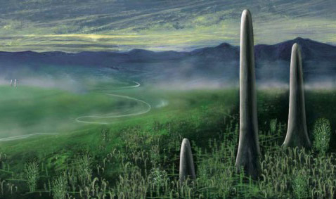 | Prototaxites возвышаются над пейзажем раннего девона |