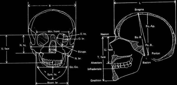 | Система стандартных промеров черепа. Рис. с сайта www.snpa.nordish.net. |